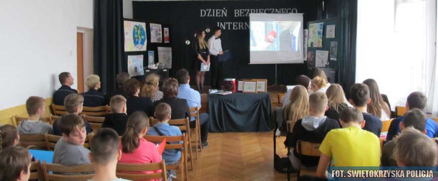 Dzielnicowy z sędziszowskiego komisariatu oraz policjantka z jędrzejowskiej komendy spotkali się z uczniami oraz nauczycielami, którzy po raz czwarty zorganizowali w murach Zespołu Szkół w Krzelowie Dzień Bezpiecznego Internetu. Mundurowi przypomnieli m. in. o tym, że sieć oprócz korzyści jakie niesie, jest również przestrzenią, gdzie popełniane są liczne przestępstwa. Bardzo często to dzieci i młodzież padają ofiarą działania niezgodnego z prawem, ale zdarzają się również sytuacje, kiedy sami korzystają z sieci wbrew prawu. Policjanci poparli przykładami zjawiska hejtu, rozpowszechniania wizerunku osób, które nie wyraziły na to zgody, podszywania się pod kogoś wbrew jego woli, zastraszania itp.