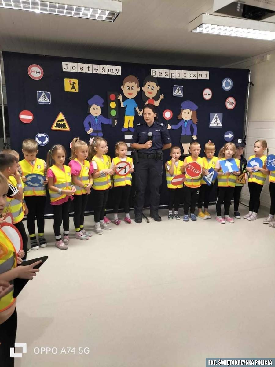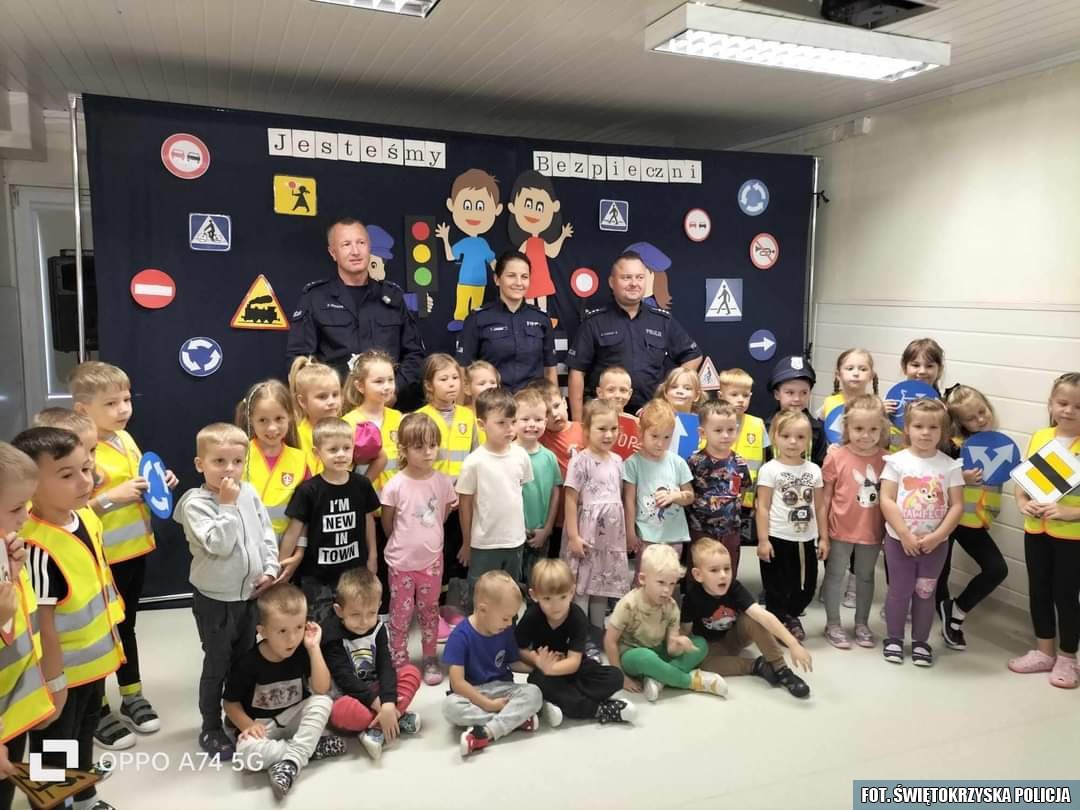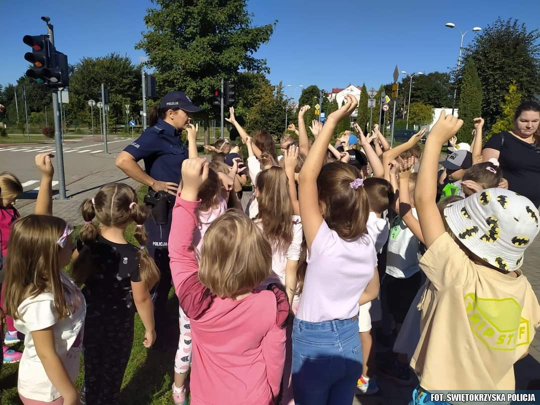 Jędrzejowscy policjanci aktywnie włączają się w akcję profilaktyczną „Bezpieczna droga do szkoły”. Podczas spotkań z najmłodszymi uczestnikami ruchu drogowego funkcjonariusze poprzez zabawę przypominali o zasadach bezpieczeństwa w drodze do i ze szkoły. Policjanci rozmawiali o zagadnieniach dotyczących obowiązujących zasad poruszania się po drodze oraz omówili dzieciom znaczenie poszczególnych znaków drogowych. Przypomnieli o potrzebie noszenia elementów odblaskowych, a także o obowiązku jeżdżenia w fotelikach ochronnych z zapiętymi pasami bezpieczeństwa. Zwrócili również uwagę jak ważne jest używanie kasku ochronnego podczas jeżdżenia na rowerze, hulajnodze bądź rolkach.