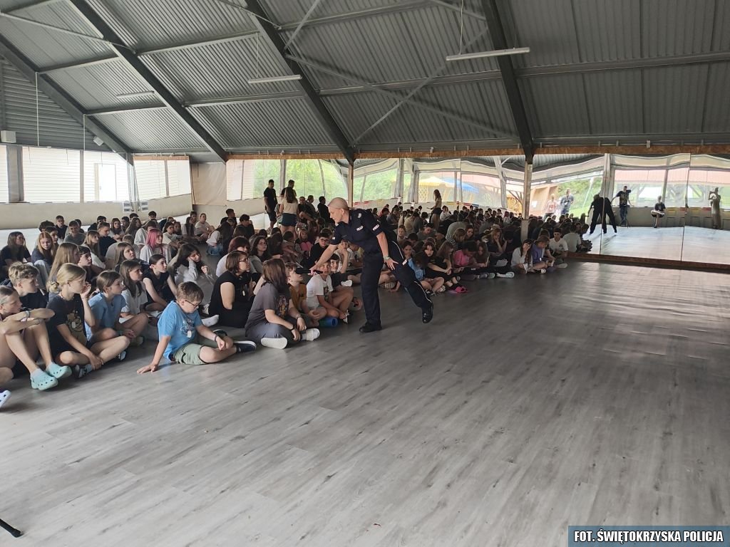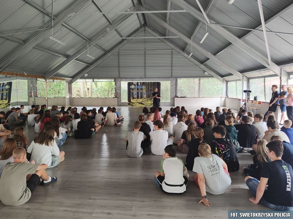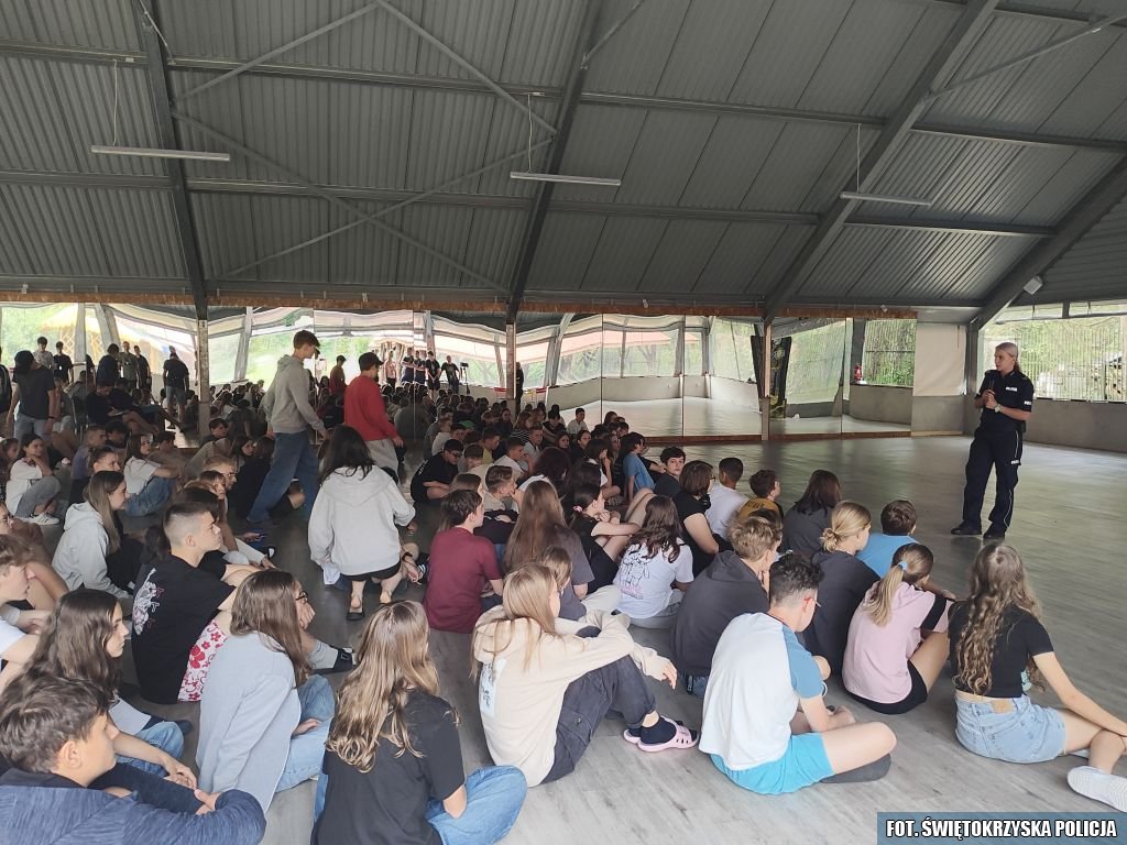 Dziś pracownik sanepidu oraz policjantka z Komendy Powiatowej Policji w Jędrzejowie odwiedziła dzieci i młodzież przebywającą na koloniach w miejscowości Bocheniec. Tematem spotkania było bezpieczeństwo podczas wakacji.