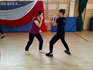 Szkolenie poprowadzili doświadczony instruktor taktyk i technik interwencji, który w praktyczny sposób zaprezentował metody obrony w sytuacjach zagrożenia. Uczestniczki miały okazję przećwiczyć metody uderzeń i kopnięć stosowanych w sytuacjach wymagających szybkiej i skutecznej reakcji. Szkolony nacisk położono na techniki podstawowe – takie jak uderzenia, kopnięcia obronne oraz reakcje na dynamiczne ataki. Ćwiczenia prowadzono w parach, co pozwoliło uczestniczkom na realistyczne odzwierciedlenie sytuacji, z jakimi mogą się spotkać w służbie.