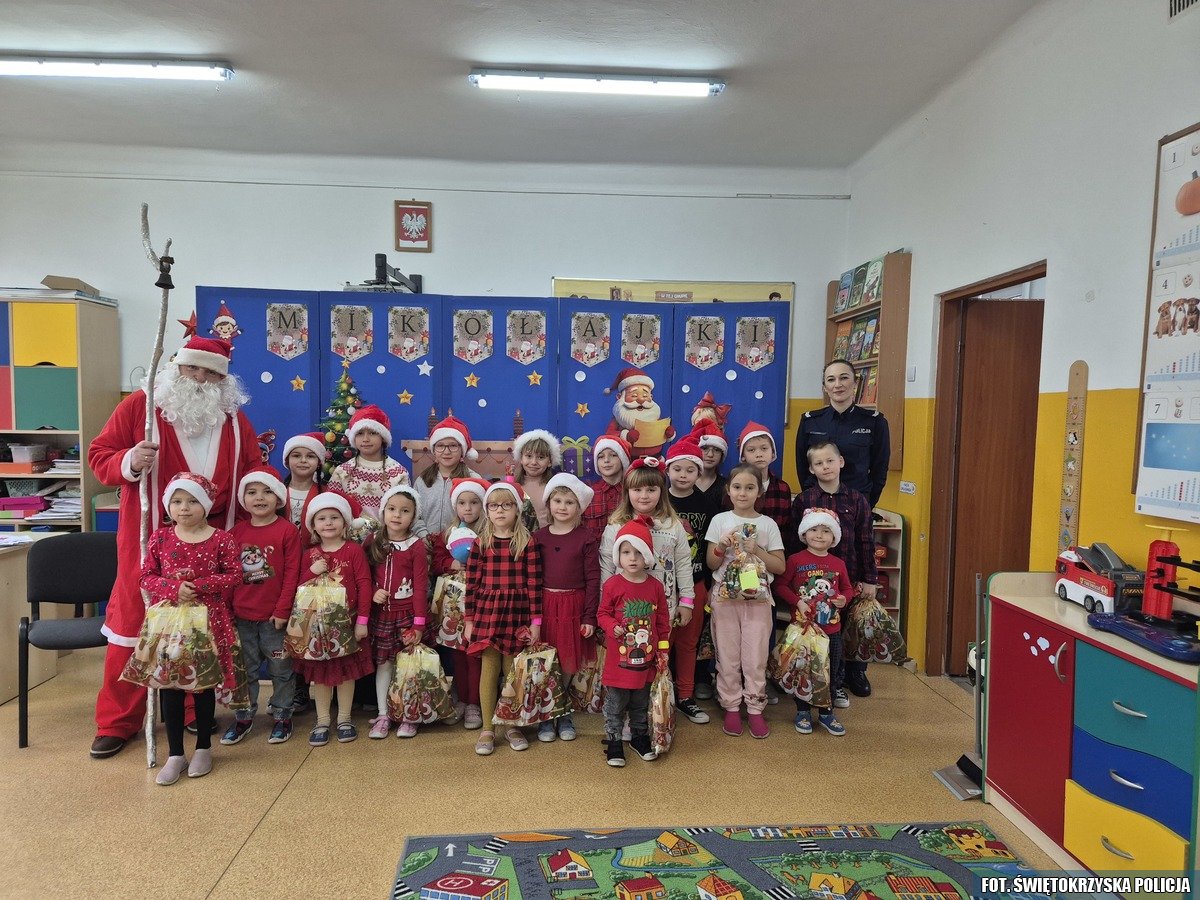 Z okazji przypadających mikołajek funkcjonariusze z Komendy Powiatowej Policji w Jędrzejowie przygotowali specjalne spotkania edukacyjne dla najmłodszych mieszkańców regionu. Policjanci odwiedzili dzieci ze Żłobka na Piaskach oraz uczniów Szkół Podstawowych w Jasionie i Brusie, aby w świątecznej atmosferze porozmawiać o bezpieczeństwie i odpowiedzialnym zachowaniu na drodze.